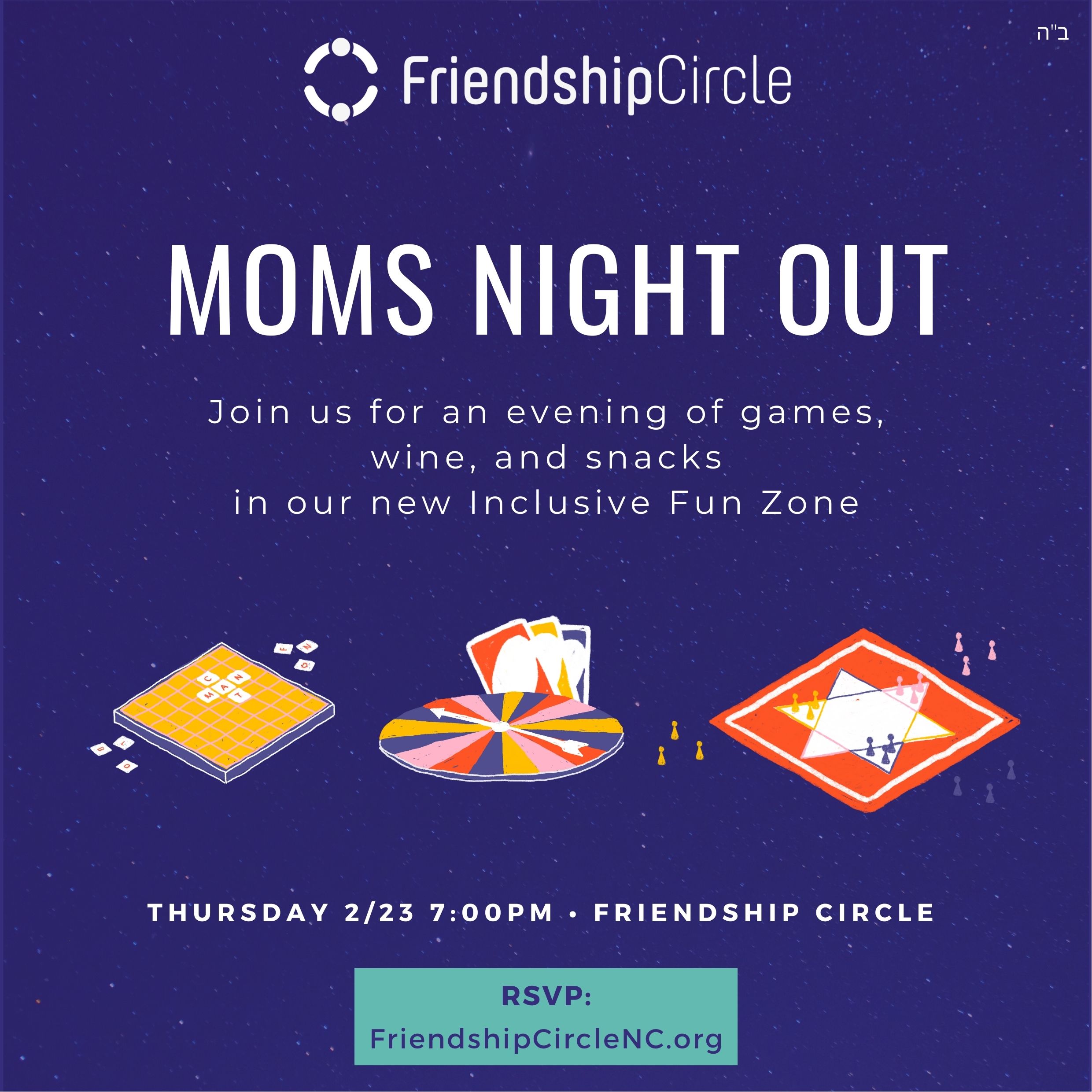 February 23, 2023 @ 7:00 pm Moms Night Out Selkin Family Friendship Circle Center 6619 Sardis Road, Charlotte, NC, United States Free